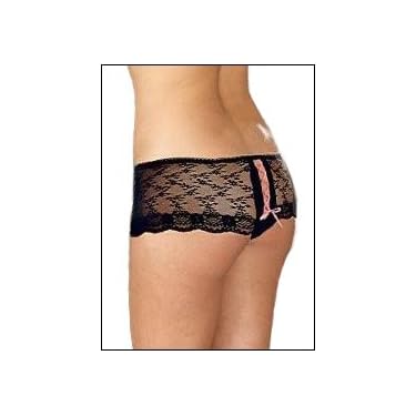 Can you say Ooh la la? These French inspired boy-style "knickers" are just the cutest panties ever. The fragile wide lace yoke rides low on the body and is joined at the back by sexy pink ribbon lacing. The huge surprise is the split crotch that offers final freedom and consolation. Also available in Plus size order item 20-30033 Hand Wash
