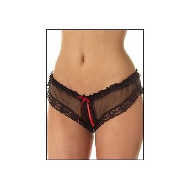TThis sheerly fragile crotchless panty is traced on every edge with one inch floral lace. The split crotch is punctuated with satin ribbon and lace "beading" framing your most feminine places. A bow below the navel adds the perfect detail. One Size fits Small to Large. Also comes is Regular Sizes. Order item 20-30009 What Does It Do For You? 1) Comfortable, yet sexy 2) Fun to wear 3) Lets you display through Why to Buy? 1) Cute boy small style 2) It"s crotchless! 3) Ultra feminine Care: Hand Wash Fabric Type: Nylon Where it is Made: USA One Size fits 1X