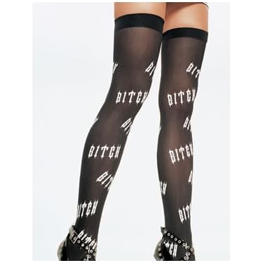 We are delighted to stock the brilliant 6672p Nylon Opaque Printed Thigh Highs, "slut", Black, One Size.